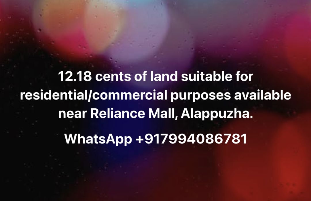 12.18 cents of land suitable for residential or commercial purposes available near the Reliance Mall, Alappuzha.