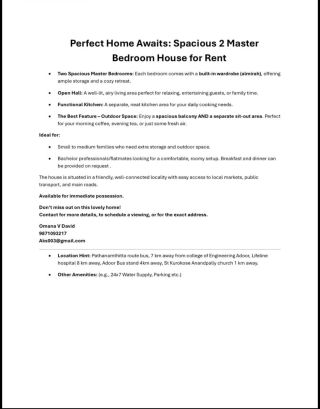 Looking to rent out your house or villa in Adoor? List your house or villa with us to connect with thousands of trusted tenents and lessees from Pathanamthitta and find the perfect match for your property quickly.